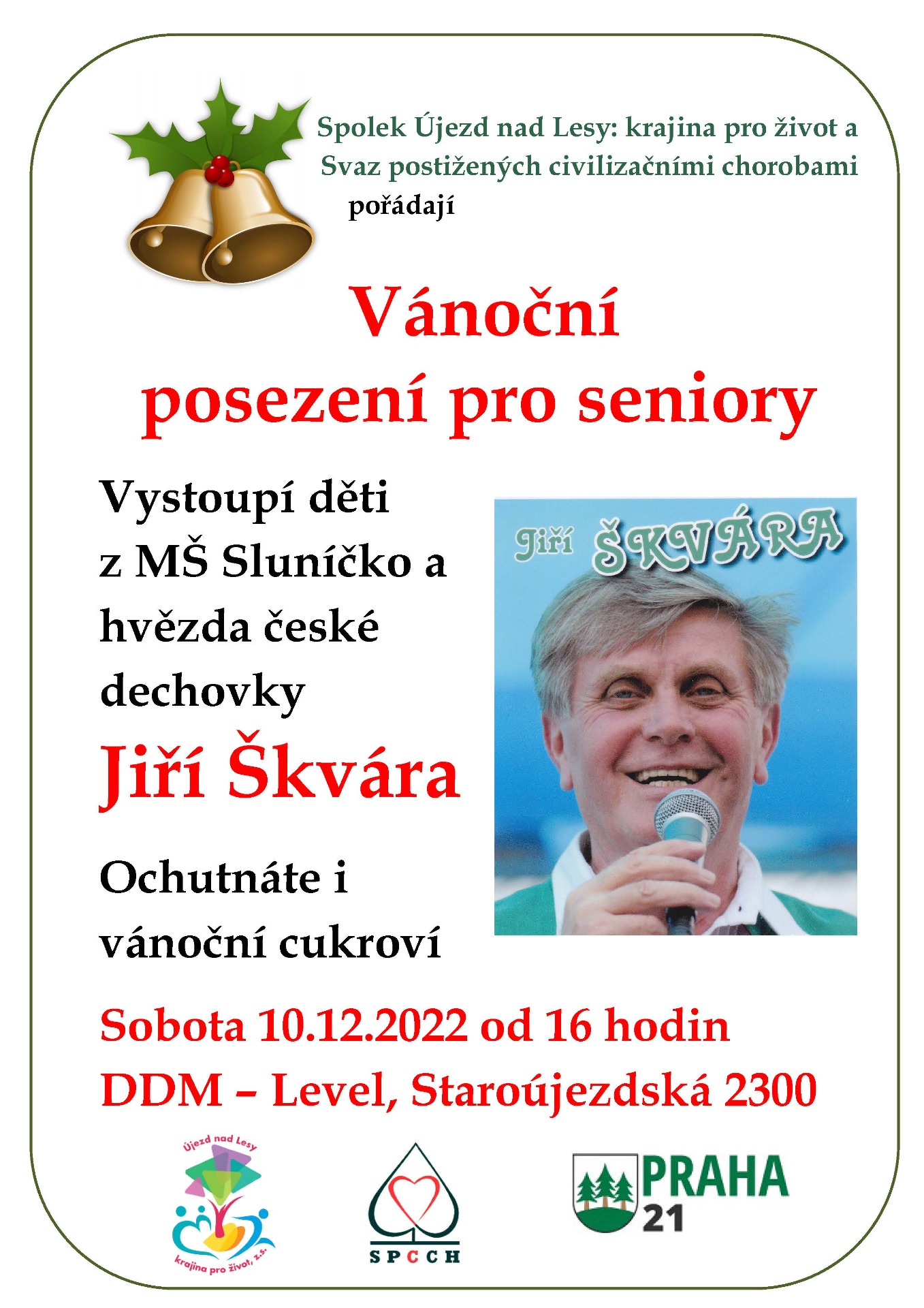 Spolky Újezd n.L.: krajina pro život a SPCCH s finanční podporou MČ Praha 21 uspořádaly pro nás –"starší dorostence/dorostenky" v sobotu 9.12. již poněkolikáté vánoční posezení pro seniory. Nicméně v nabitém sále Levelu bylo možno spatřit nemálo mládeže. Tak jako v předchozích letech byl celý více než dvouhodinový program zajímavý od začátku do konce. Již při příchodu ke stolům bylo jest spatřiti připravené bohaté občerstvení. Program začal dojemným vystoupením roztomilých Soviček pod vedením paní učitelky Daniely Janoušové se známými i novými vánočními písněmi. Po skončení se děti rozběhly mezi stoly a věnovaly nám krásná vánoční přání, která byla vyhotovena s paní Evou Danielovou.